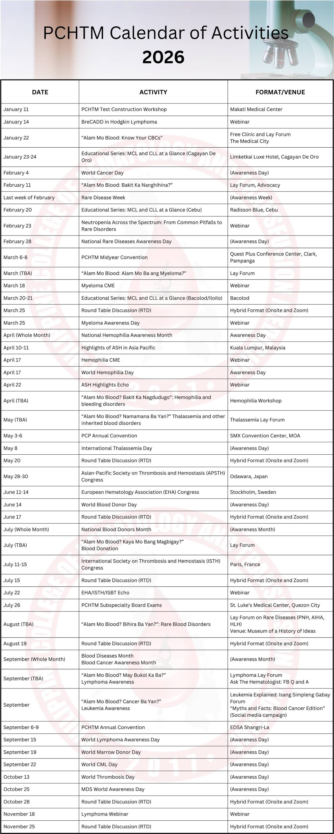 PHILIPPINE COLLEGE OF HEMATOLOGY AND TRANSFUSION MEDICINE